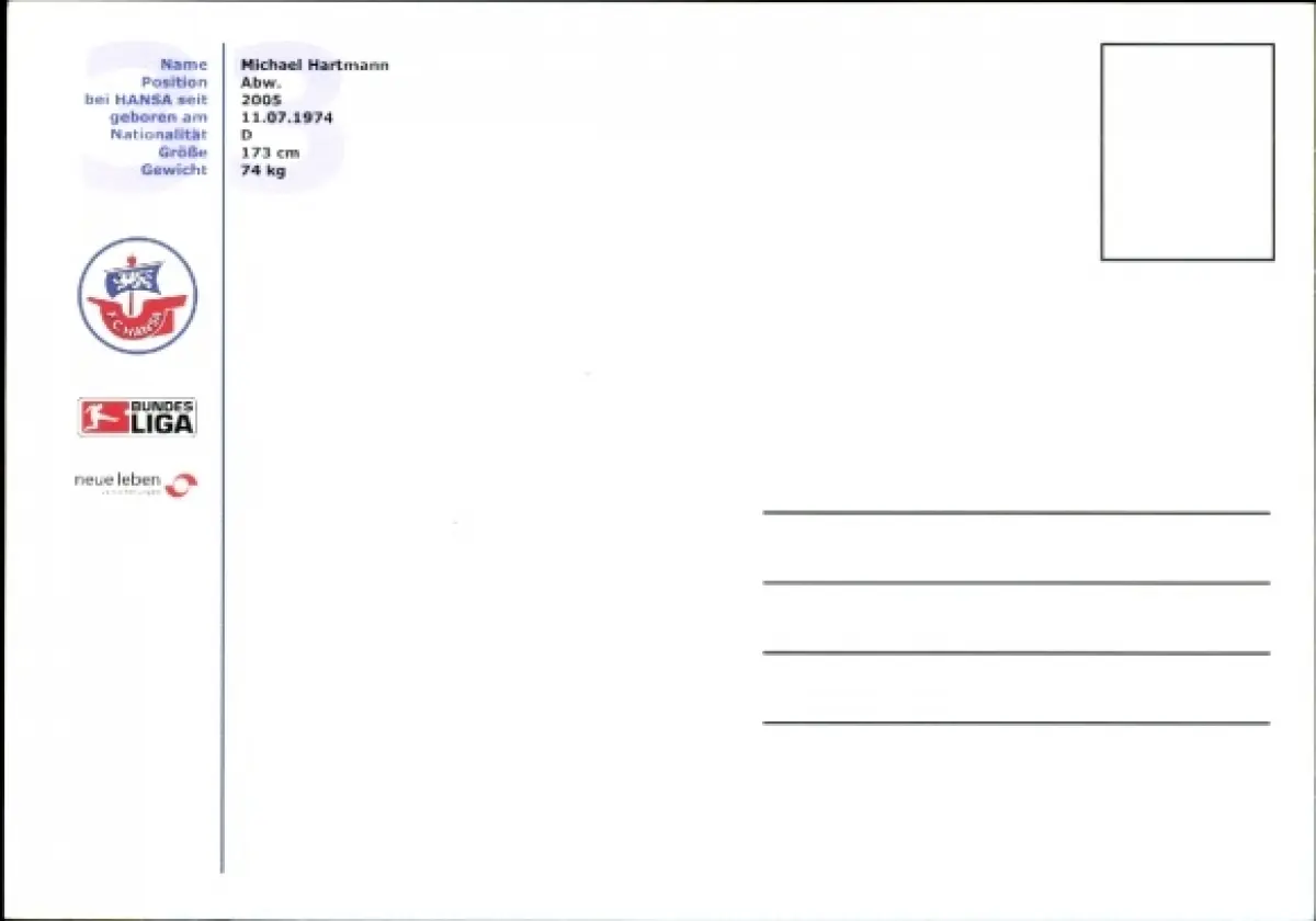 Autogrammkarte Fußballer Michael Hartmann, FC Hansa Rostock, Autogramm