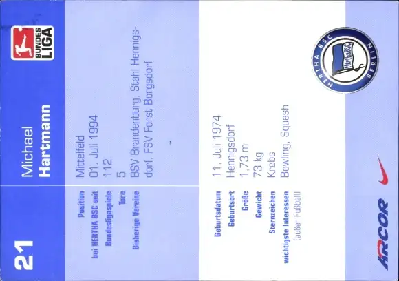 Autogrammkarte Fußballer Michael Hartmann, Hertha BSC, Autogramm