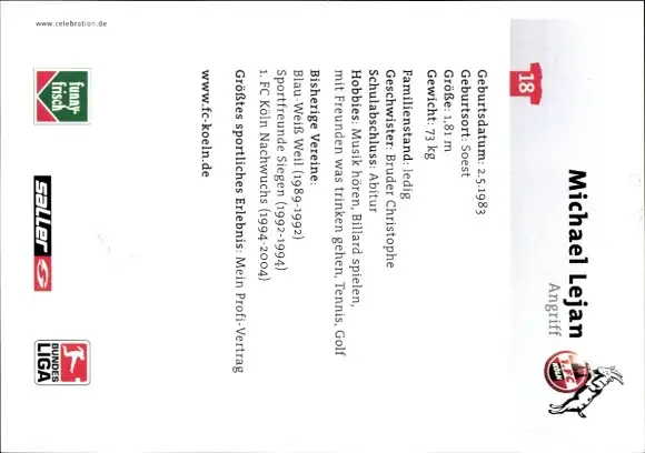 Autogrammkarte Fußballer Michael Lejan, 1. FC Köln, Autogramm
