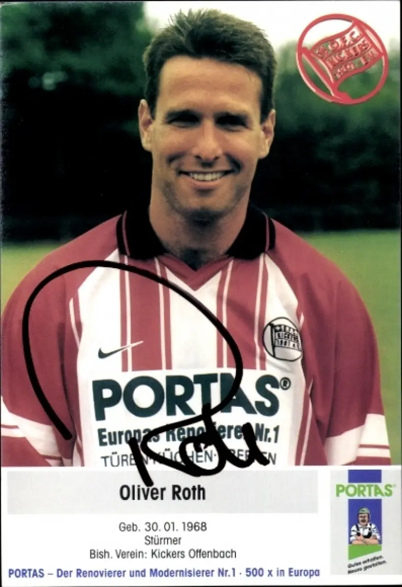 Autogrammkarte Fußballer Oliver Roth, Kickers Offenbach, Autogramm