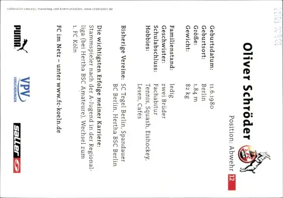 Autogrammkarte Fußballer Oliver Schröder, 1. FC Köln, Autogramm