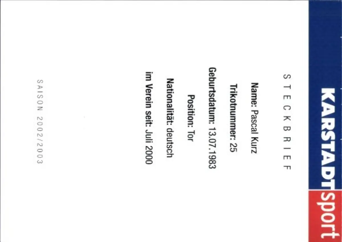 Autogrammkarte Fußballer Pascal Kurz, Rot Weiss Essen, Autogramm