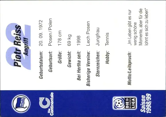 Autogrammkarte Fußballer Piotr Reiss, Hertha BSC, Autogramm