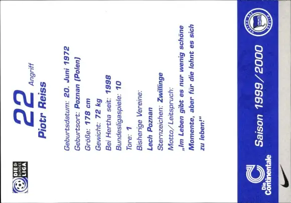 Autogrammkarte Fußballer Piotr Reiss, Hertha BSC, Autogramm