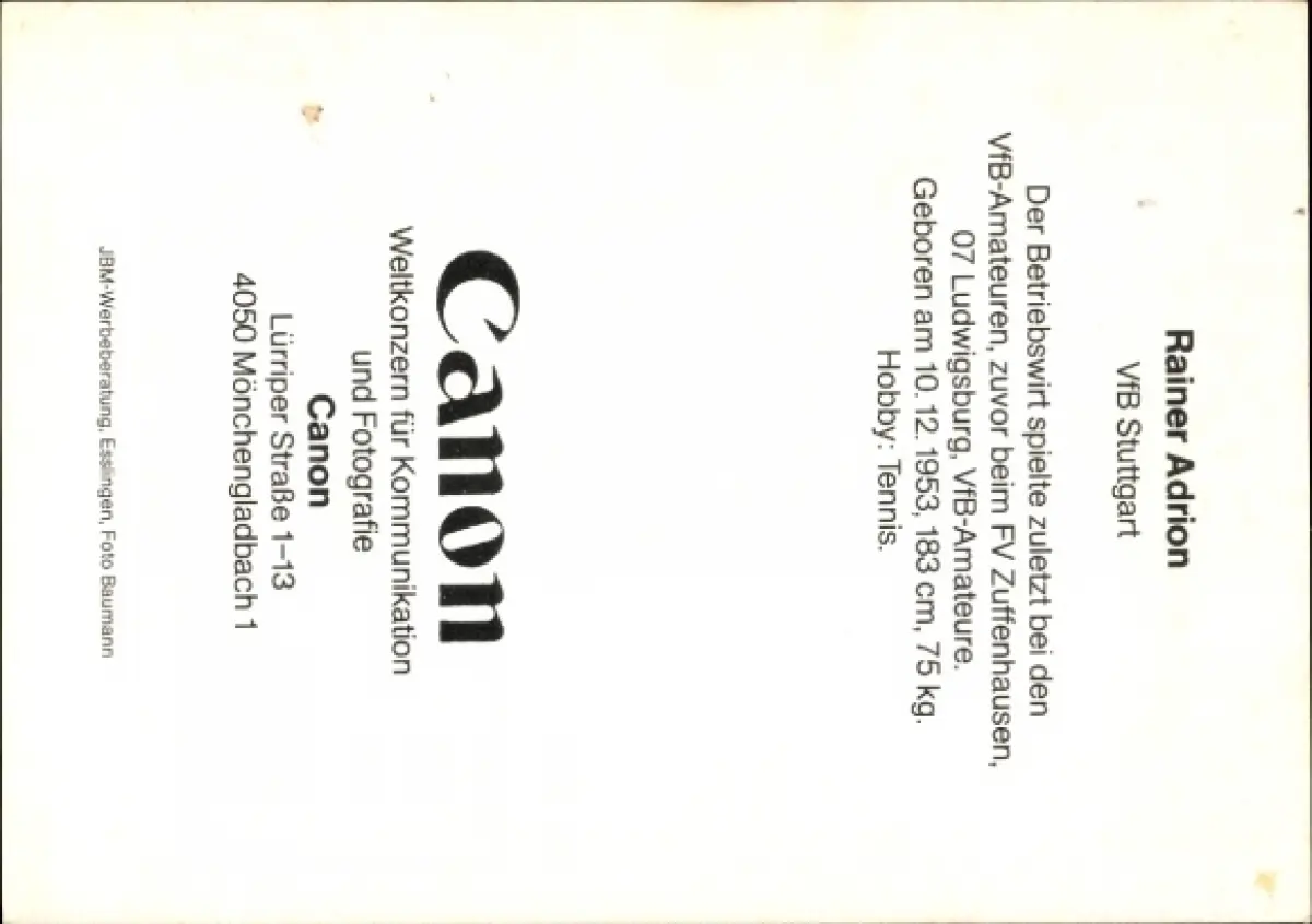 Autogrammkarte Fußballer Rainer Adrion, VfB Stuttgart