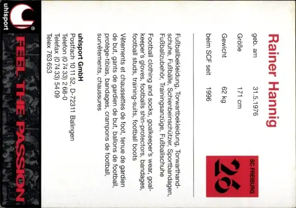 Autogrammkarte Fußballer Rainer Hannig, SC Freiburg, Autogramm