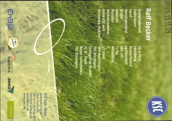 Autogrammkarte Fußballer Ralf Becker, Karlsruher SC, Autogramm