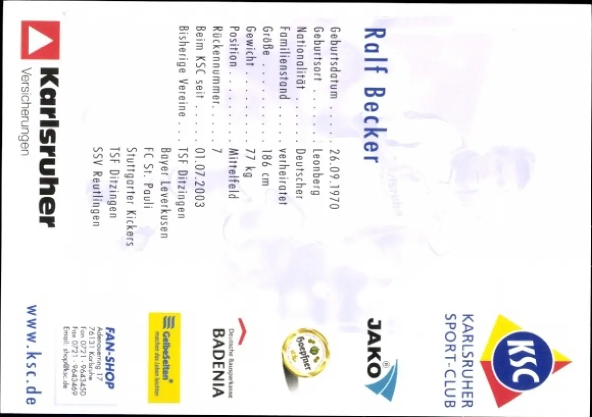Autogrammkarte Fußballer Ralf Becker, Karlsruher SC, Autogramm