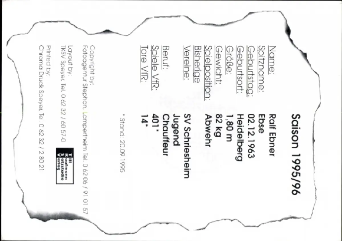 Autogrammkarte Fußballer Ralf Ebner, VfR Mannheim, Autogramm