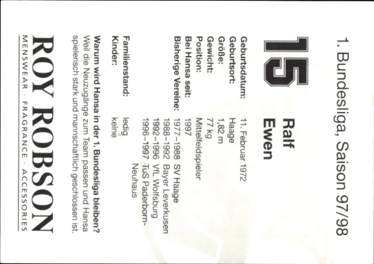 Autogrammkarte Fußballer Ralf Ewen, FC Hansa Rostock, Autogramm