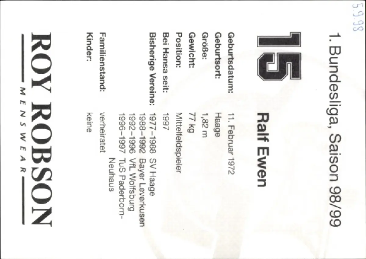Autogrammkarte Fußballer Ralf Ewen, FC Hansa Rostock, Autogramm