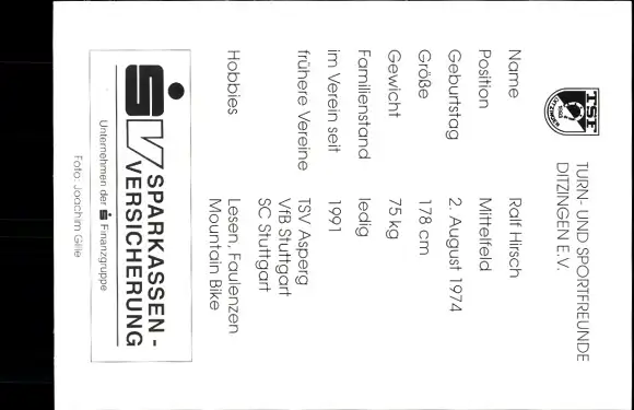 Autogrammkarte Fußballer Ralf Hirsch, TSF Ditzingen, Autogramm