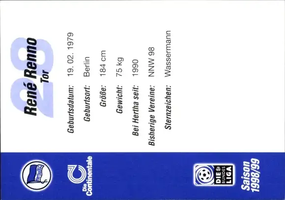 Autogrammkarte Fußballer René Renno, Hertha BSC, Autogramm