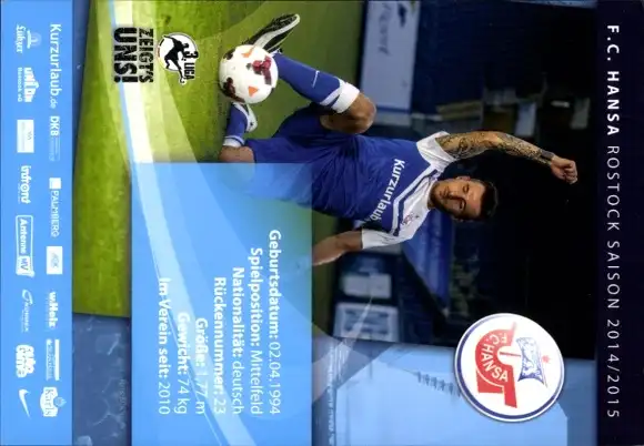 Autogrammkarte Fußballer Robin Krauße, FC Hansa Rostock, Autogramm