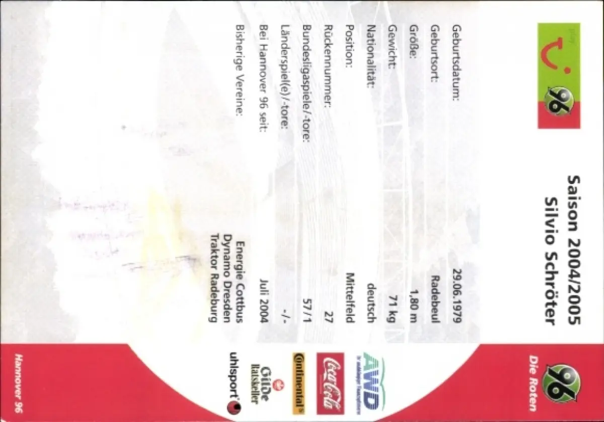 Autogrammkarte Fußballer Silvio Schröter, Hannover 96, Autogramm