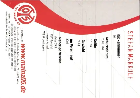Autogrammkarte Fußballer Stefan Markolf, 1. FSV Mainz 05, Autogramm