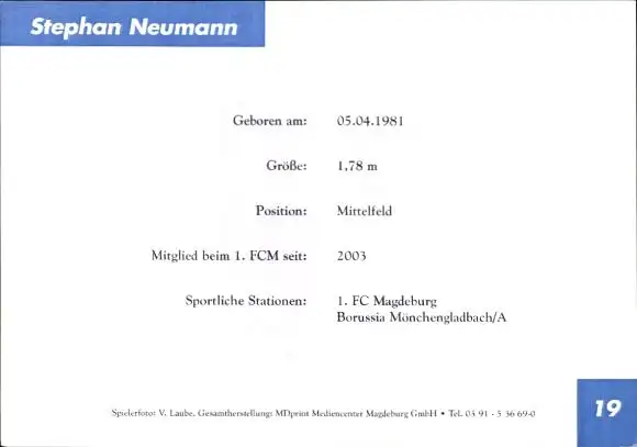 Autogrammkarte Fußballer Stephan Neumann, 1. FC Magdeburg, Autogramm