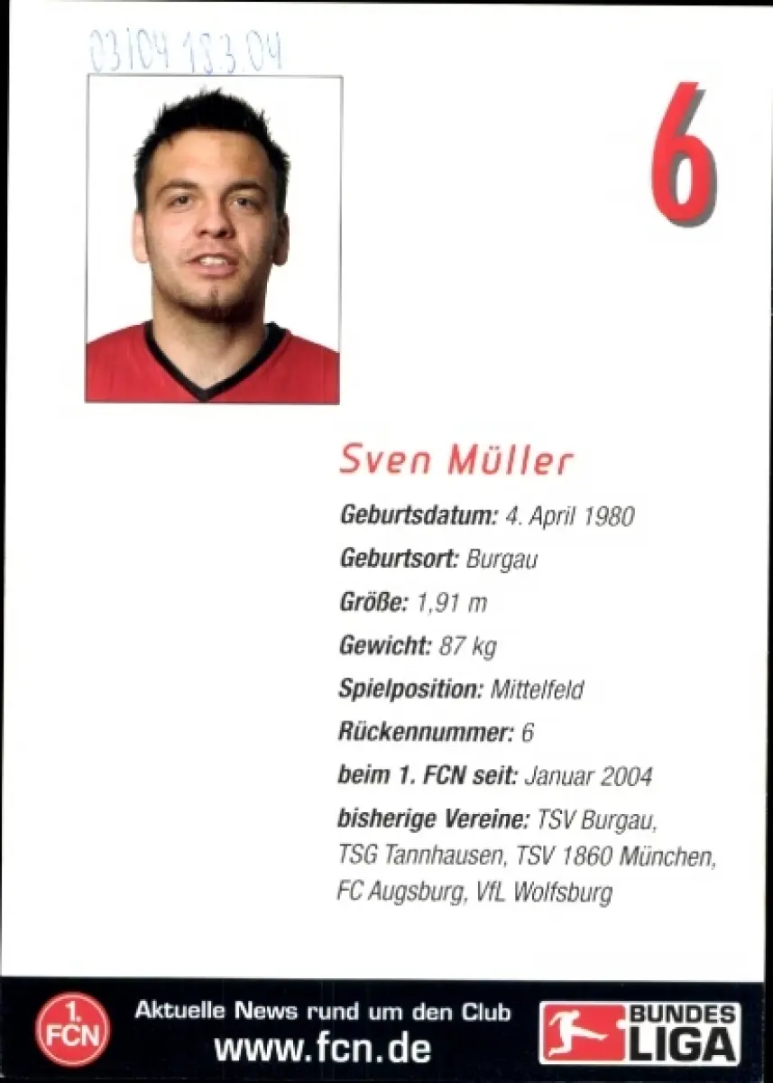 Autogrammkarte Fußballer Sven Müller, 1.FC Nürnberg, Autogramm