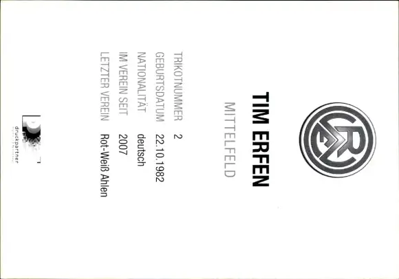 Autogrammkarte Fußballer Tim Erfen, Rot-Weiss Essen, Autogramm