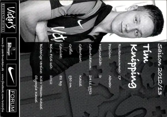 Autogrammkarte Fußballer Tim Knipping, 1. FC Saarbrücken, Autogramm