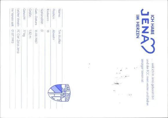 Autogrammkarte Fußballer Tim Wuttke, FC Carl Zeiss Jena, Autogramm