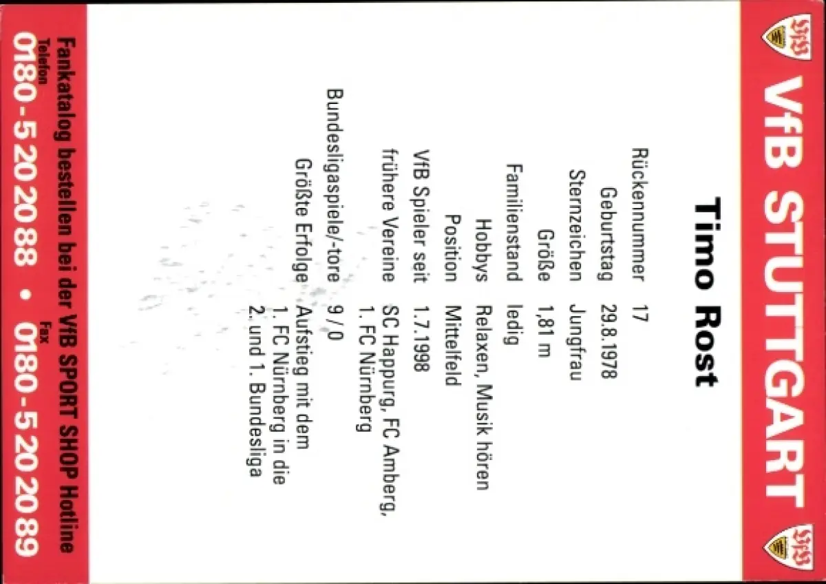 Autogrammkarte Fußballer Timo Rost, VfB Stuttgart, Autogramm