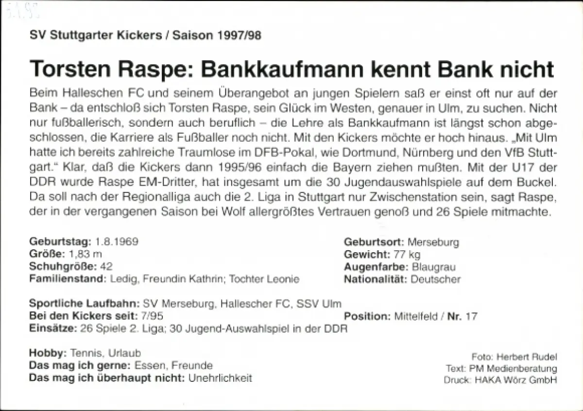 Autogrammkarte Fußballer Torsten Raspe, Stuttgarter Kickers, Autogramm