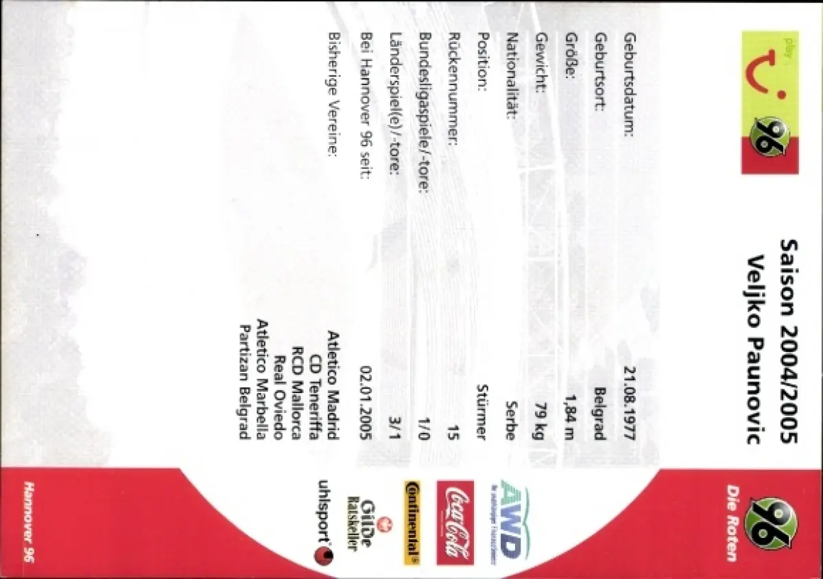 Autogrammkarte Fußballer Veljko Paunovic, Hannover 96, Autogramm