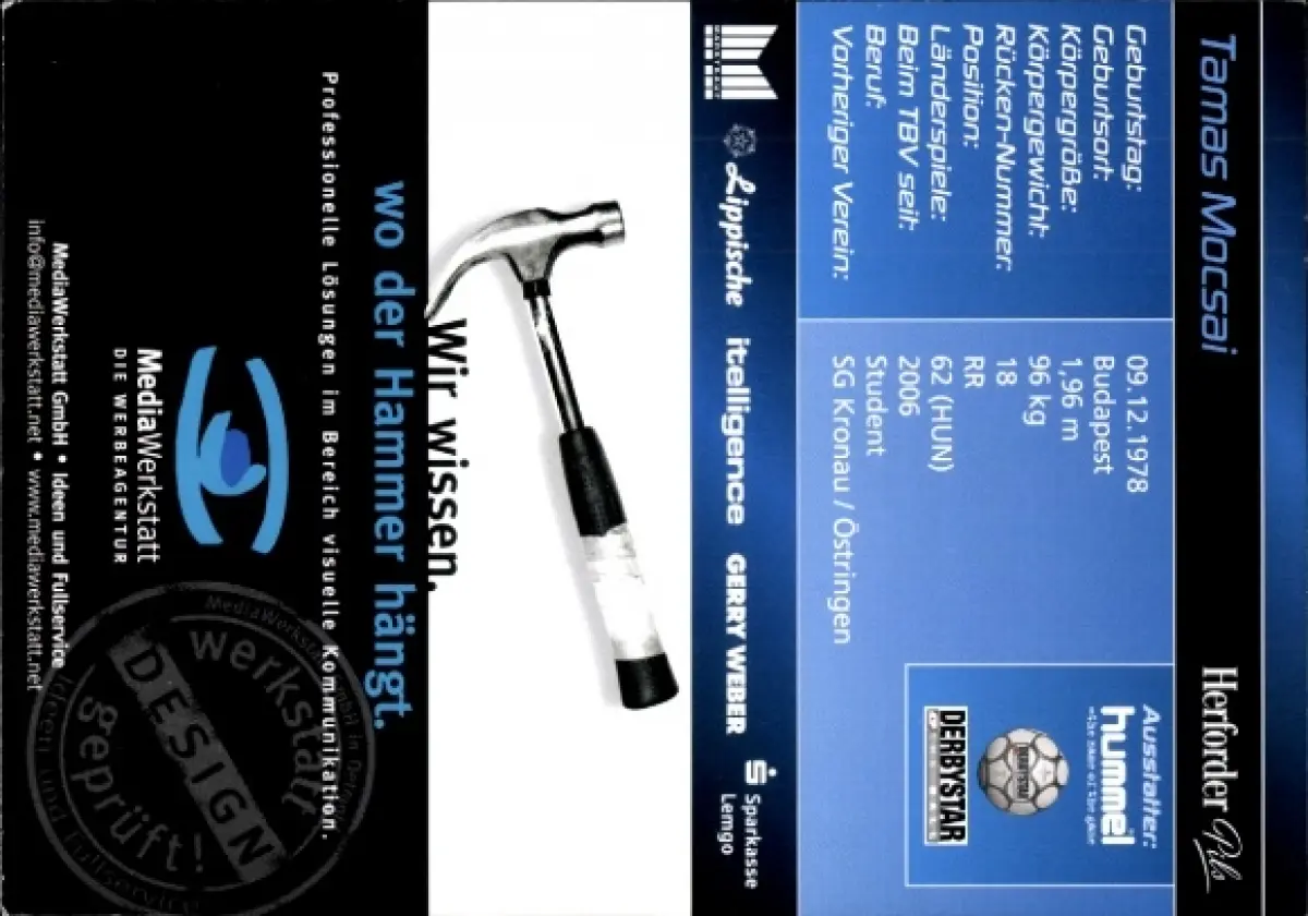 Autogrammkarte Handballer Tamas Mocsai, TBV Lemgo, Autogramm
