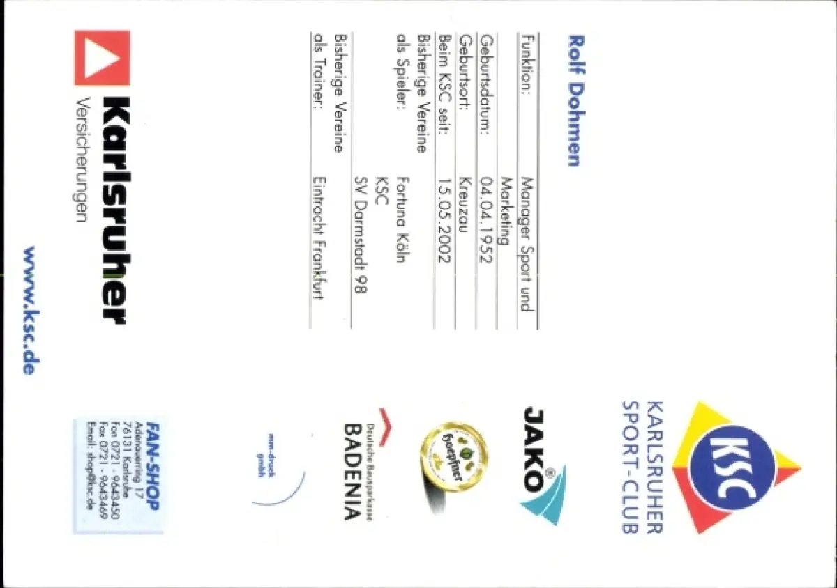 Autogrammkarte Manager Rolf Dohmen, Karlsruher SC
