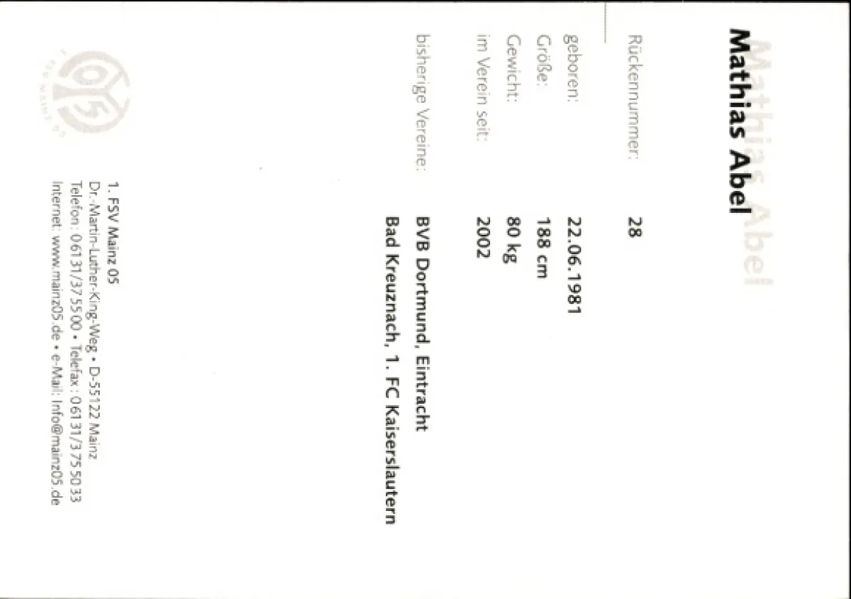 Autogrammkarte Mathias Abel, 1. FSV Mainz 05, Autogramm