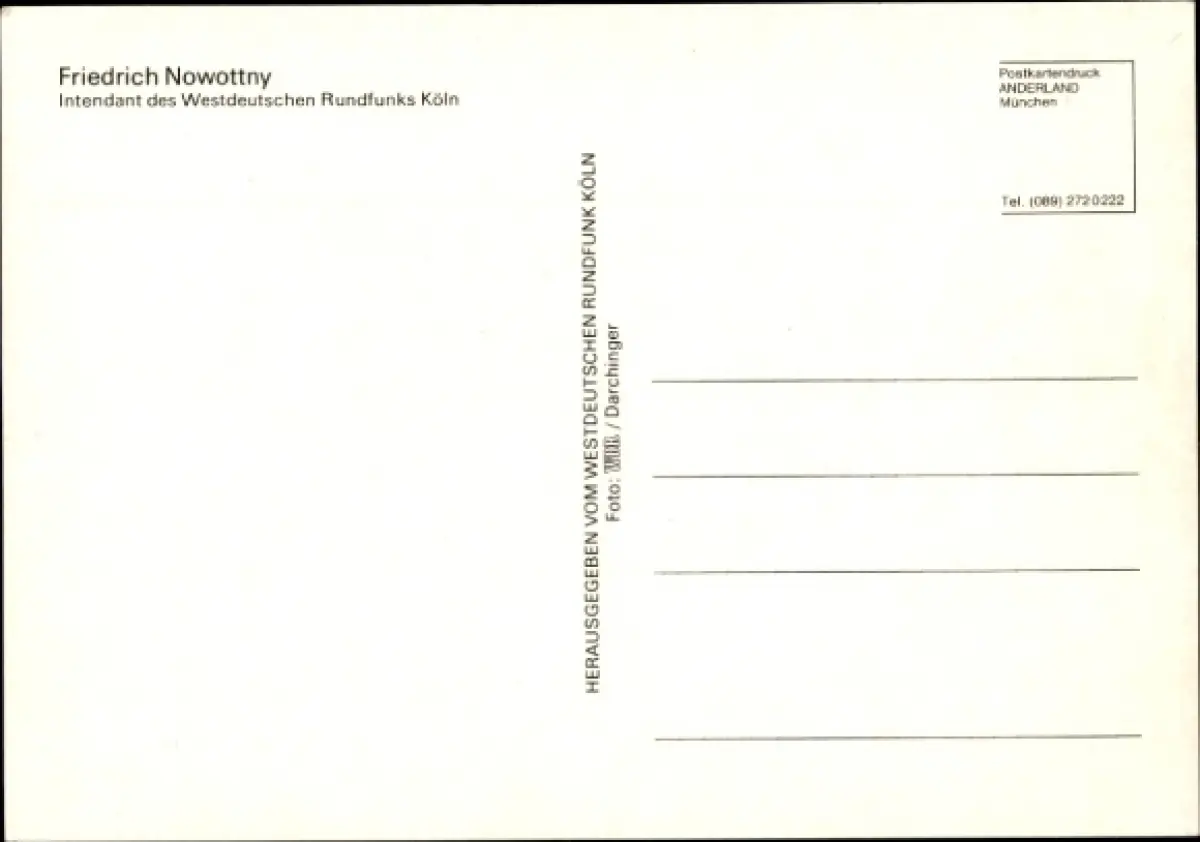Autogrammkarte Moderator Friedrich Nowottny, Portrait, Autogramm