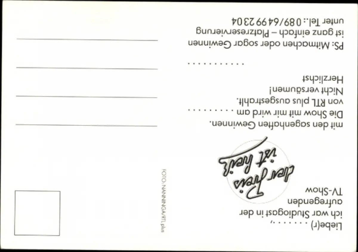Autogrammkarte Moderator Harry Wijnvoord, Portrait, Autogramm, RTL Plus