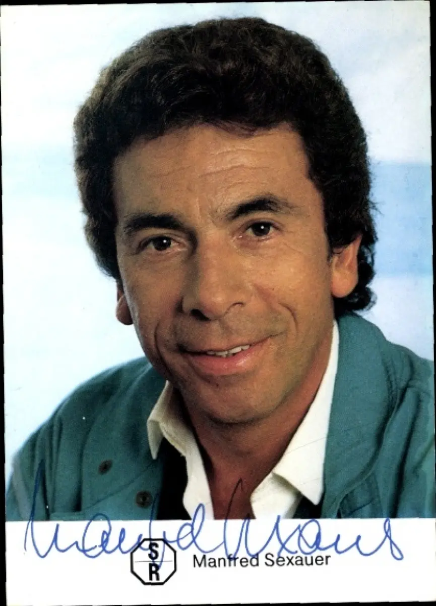 Autogrammkarte Moderator Manfred Sexauer, Portrait, Autogramm