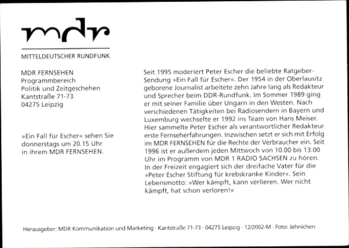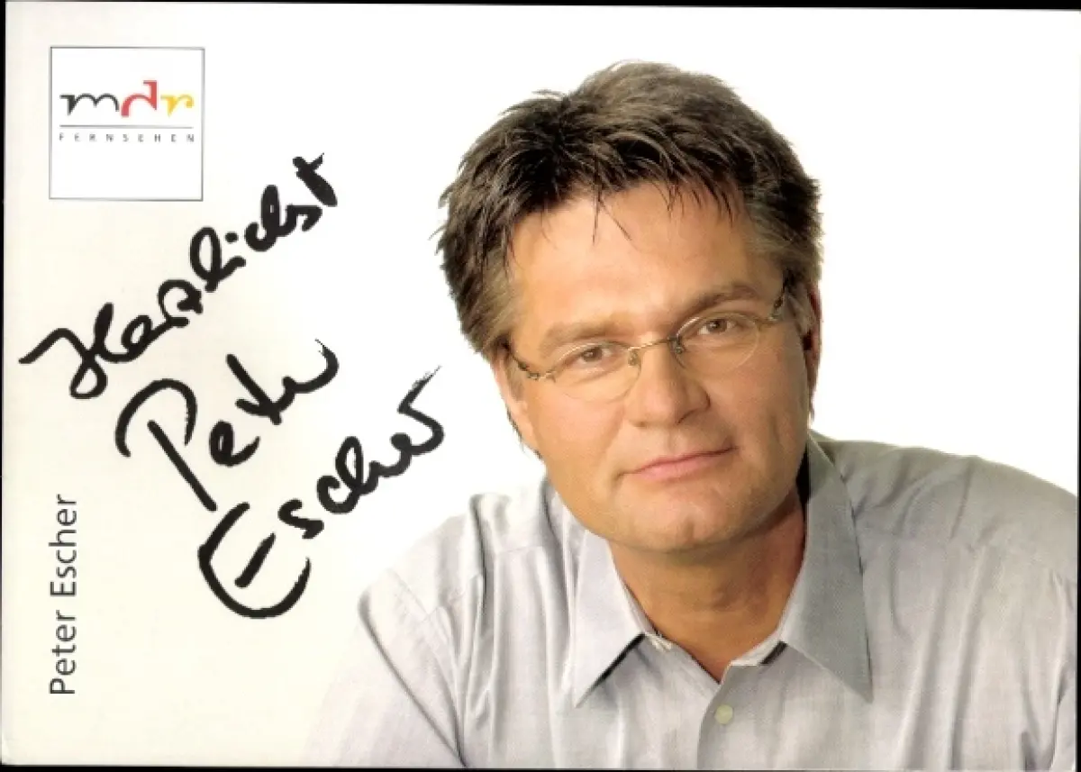 Autogrammkarte Moderator Peter Escher, Portrait, Autogramm