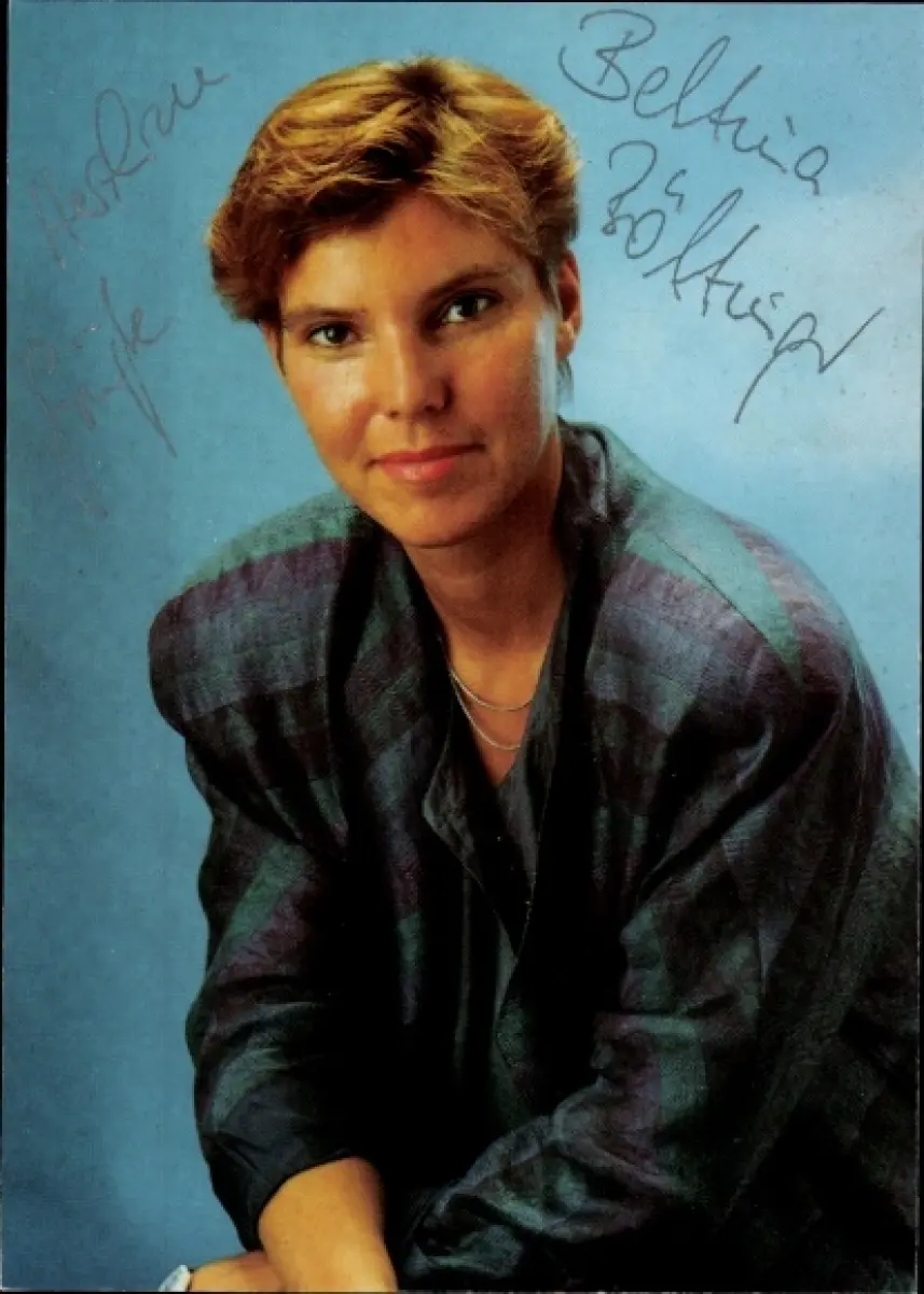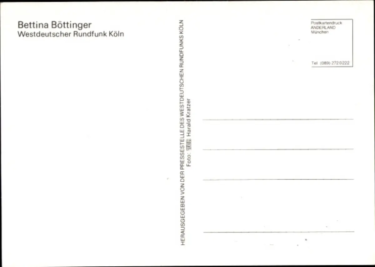 Autogrammkarte Moderatorin Bettina Böttinger, Portrait, Autogramm