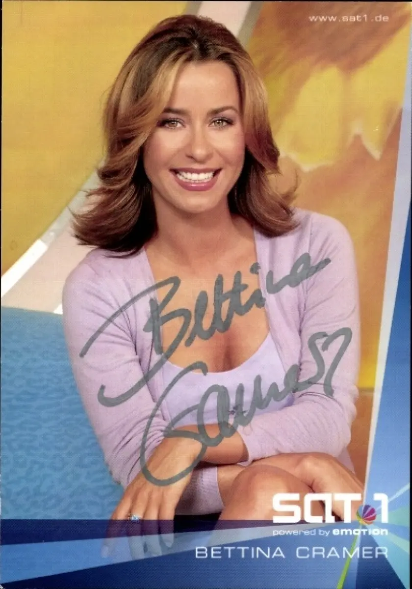 Autogrammkarte Moderatorin Bettina Cramer, Portrait, Autogramm