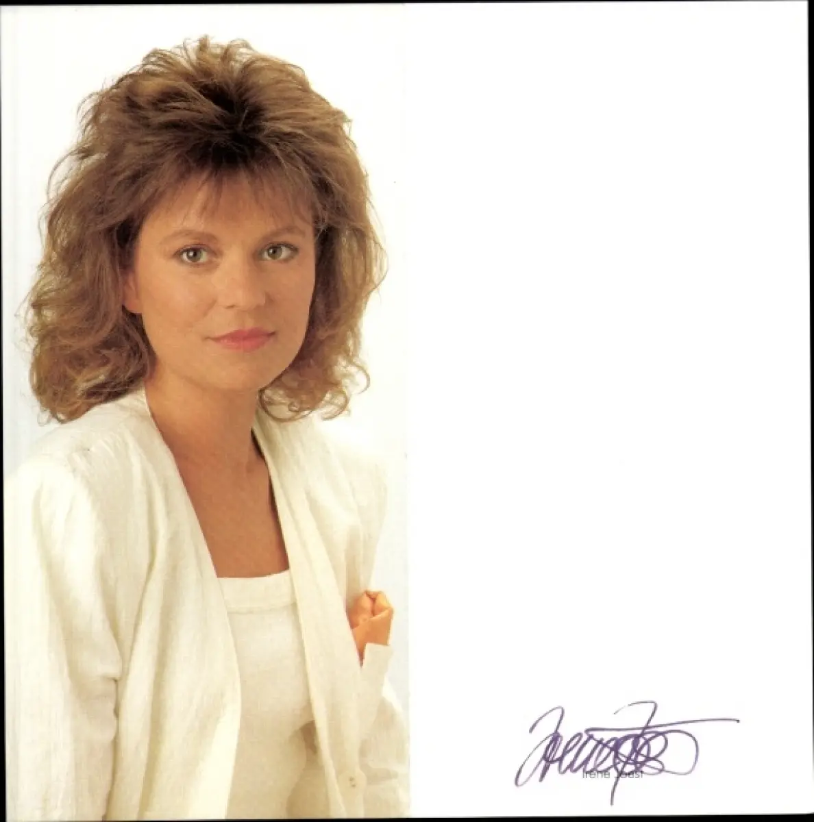 Autogrammkarte Moderatorin Irene Joest, Portrait, Autogramm