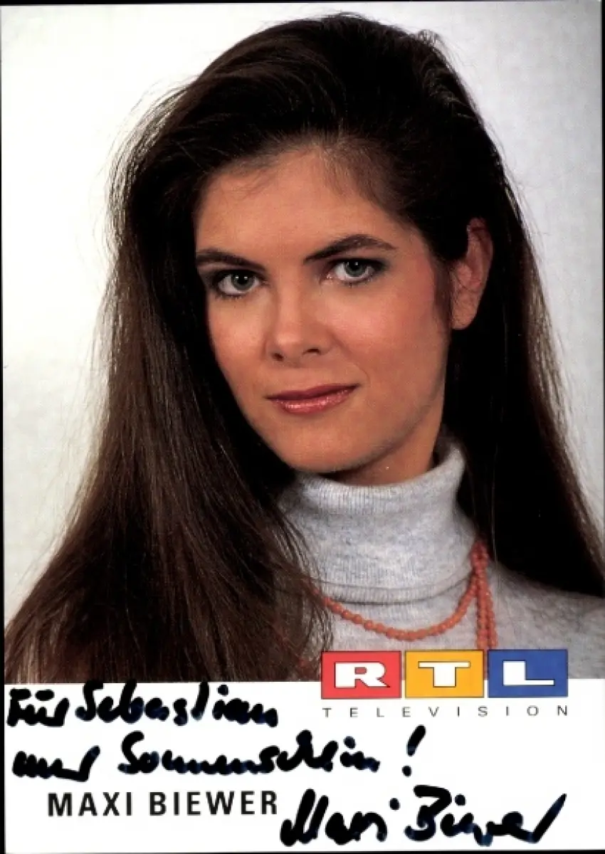 Autogrammkarte Moderatorin Maxi Biewer, Portrait, Autogramm