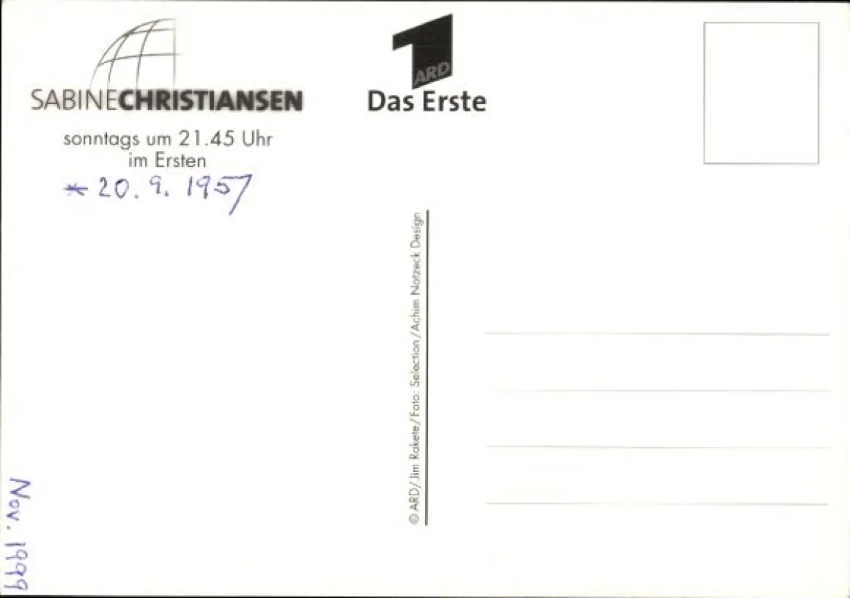 Autogrammkarte Moderatorin Sabine Christiansen, Portrait, Autogramm