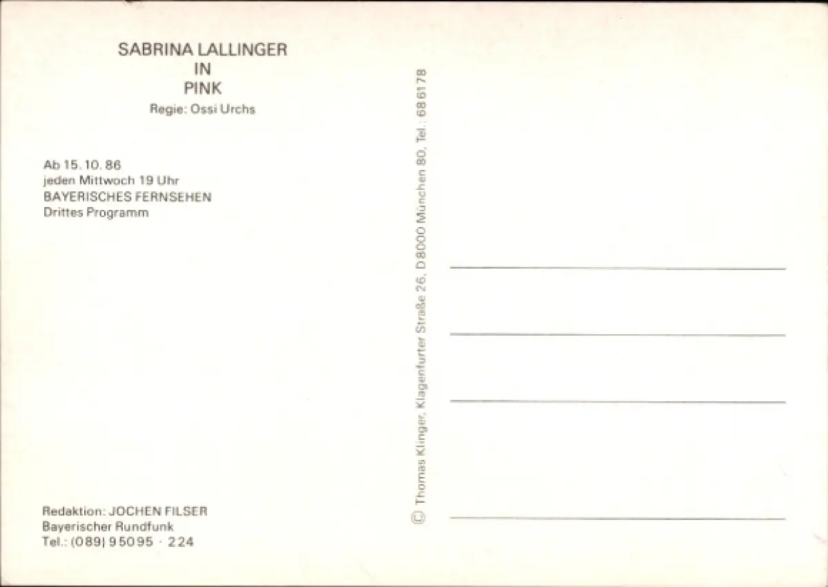 Autogrammkarte Moderatorin Sabrina Lallinger in Pink, Portrait, Autogramm