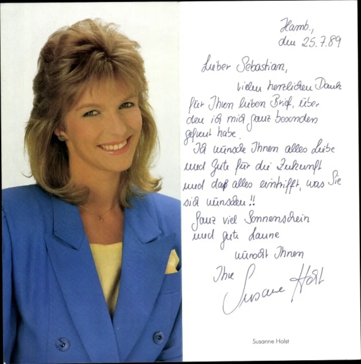 Autogrammkarte Moderatorin Susanne Holst, Portrait, Autogramm