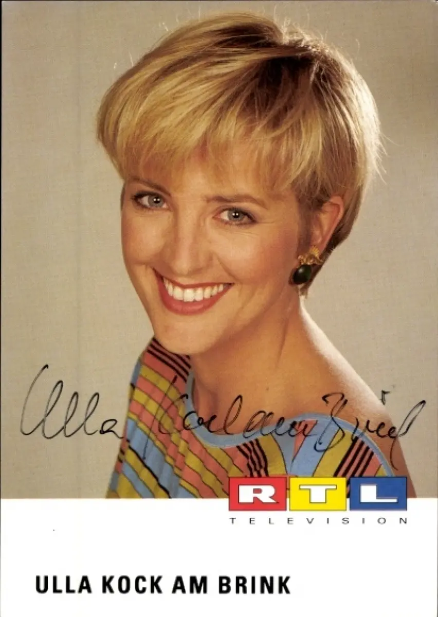 Autogrammkarte Moderatorin Ulla Kock am Brink, Portrait, Autogramm