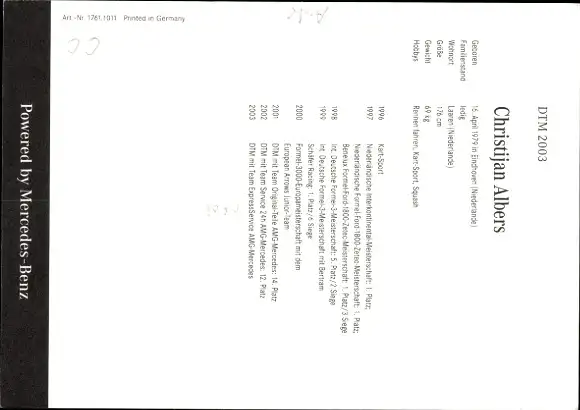 Autogrammkarte Motorrennsport, Christijan Albers