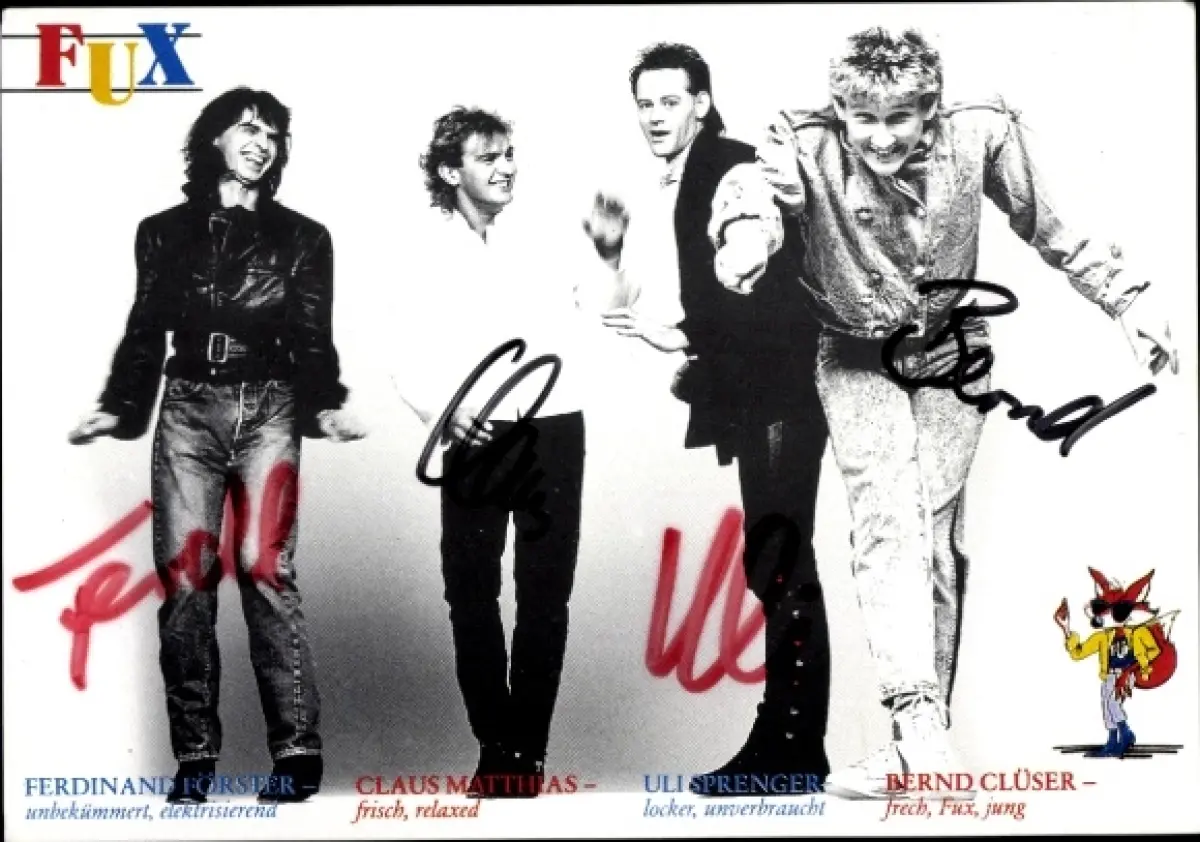 Autogrammkarte Musikgruppe Fux, Portrait, Autogramme