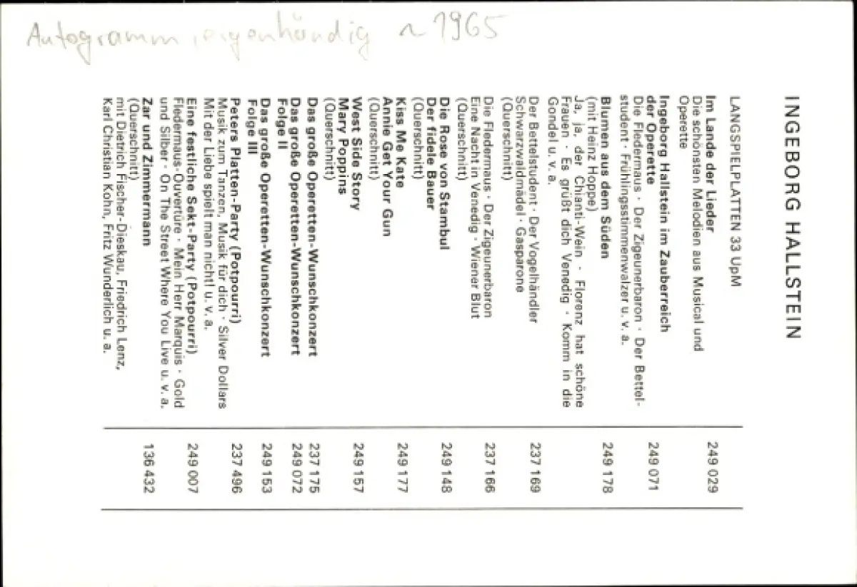 Autogrammkarte Opernsängerin Ingeborg Hallstein, Portrait, Autogramm