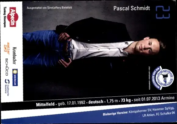 Autogrammkarte Pascal Schmidt, Arminia Bielefeld, Autogramm