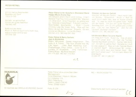 Autogrammkarte Peter Petrel, Portrait, Autogramm