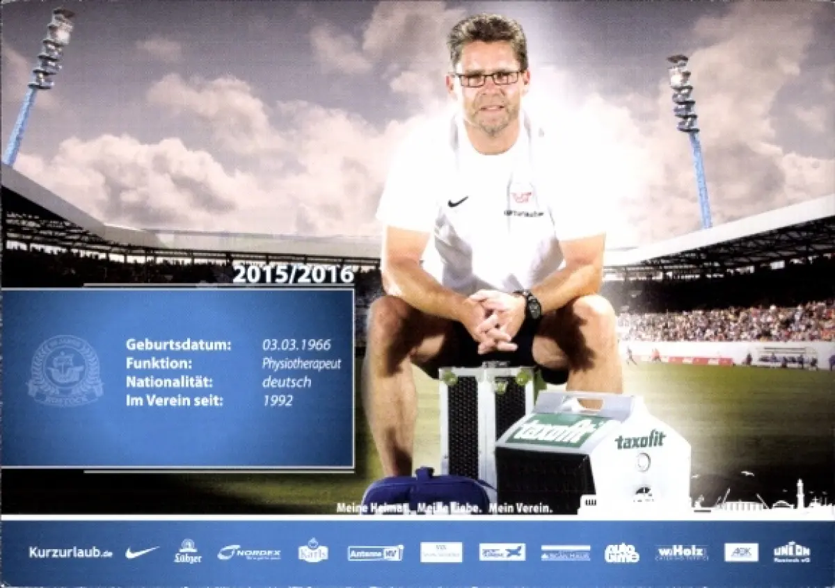 Autogrammkarte Physiotherapeut Frank Scheller, FC Hansa Rostock, Autogramm
