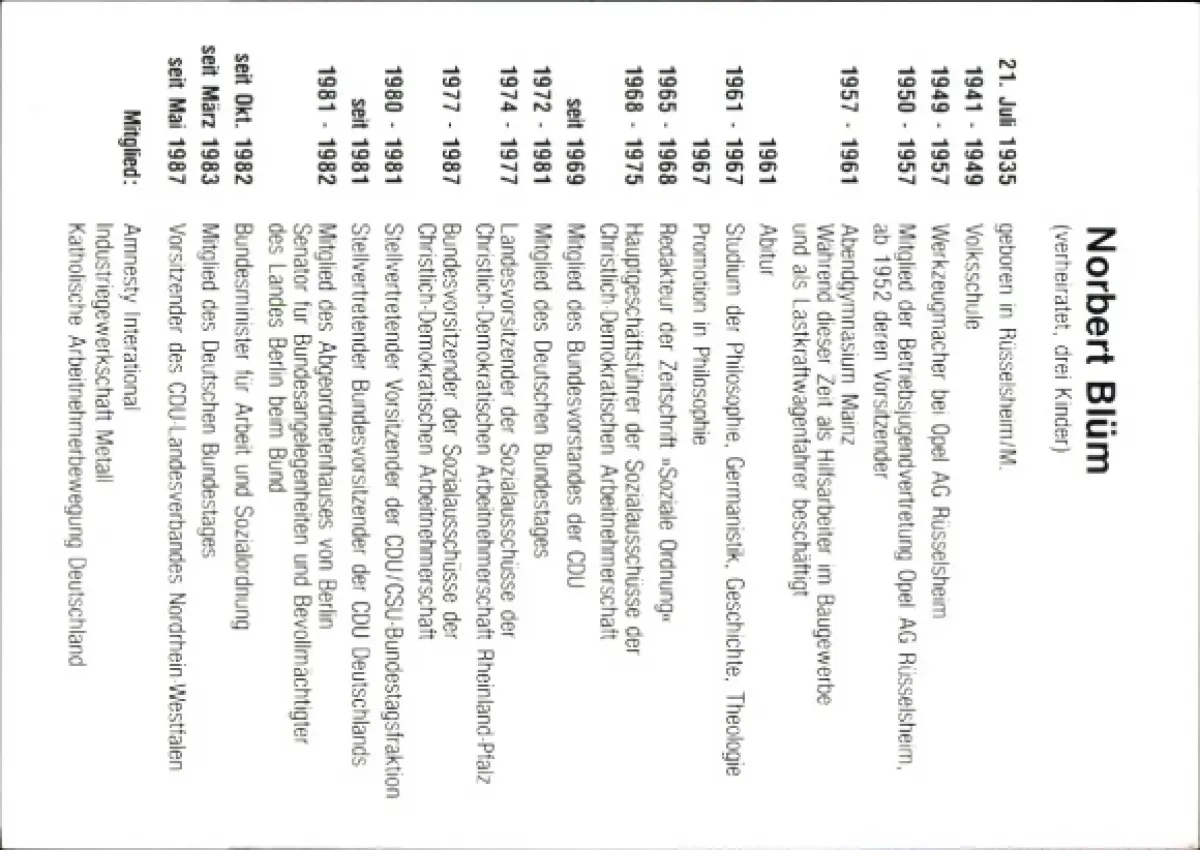 Autogrammkarte Politiker Norbert Blüm, Autogramm